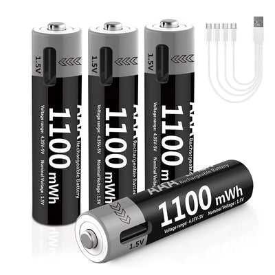 MATOV USB Li-ion AAA Rechargeable Battery Aaa 1.5V 1100mWh Lithium Batteries with 4-in-1 USB Cable for Toys Camera Flashlight